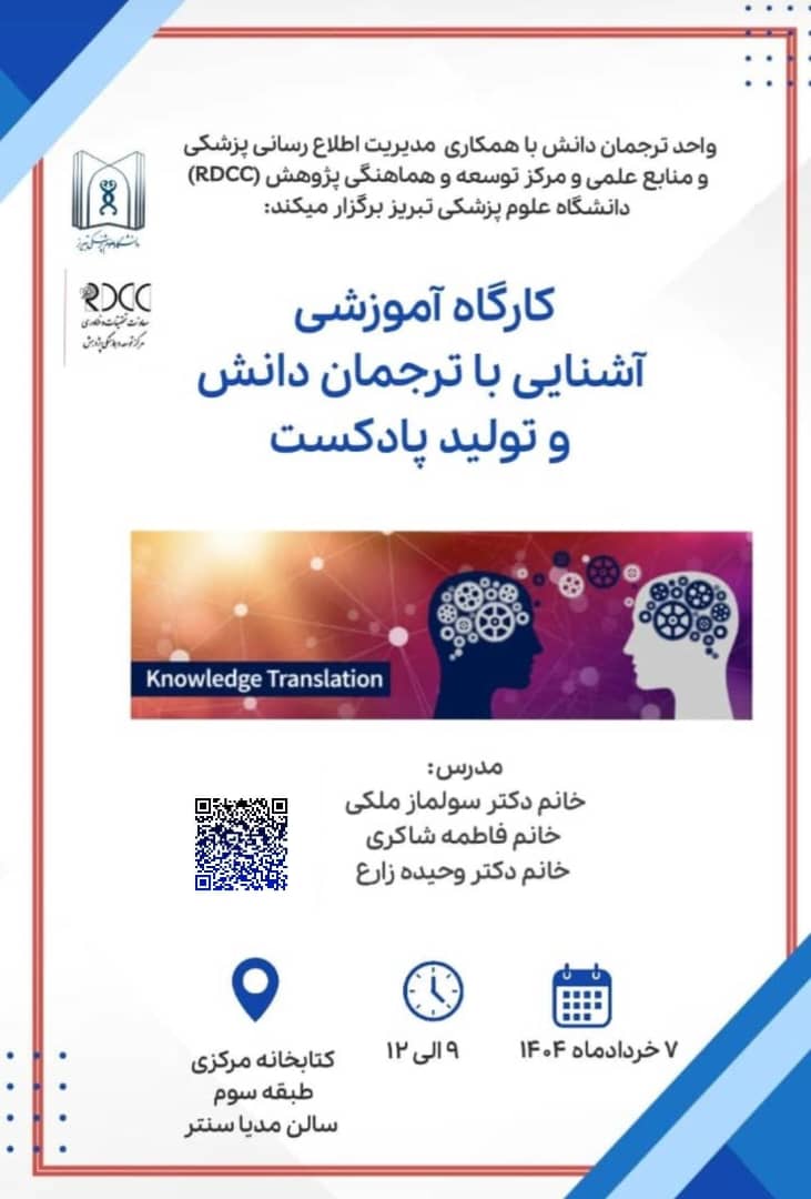 برگزار کننده دوره: واحد ترجمان دانش مدیریت اطلاع رسانی پزشکی و منابع علمی دانشگاه